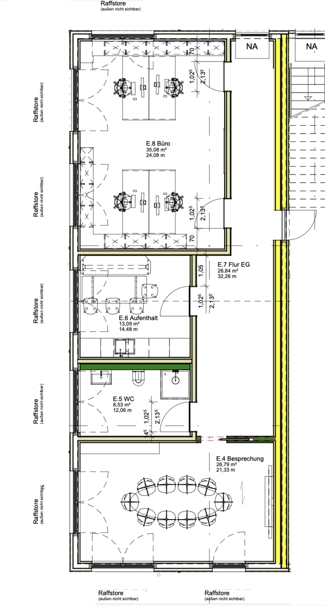 - Fenster mit Raffstores zur Verschattung- Moderner Fußbodenbelag (von Mieter wählbar)